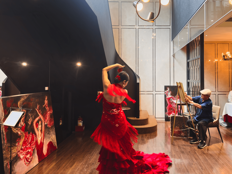 佛朗明哥舞者现场精彩演出,李永裕老师同步作画。慕舍酒店提供